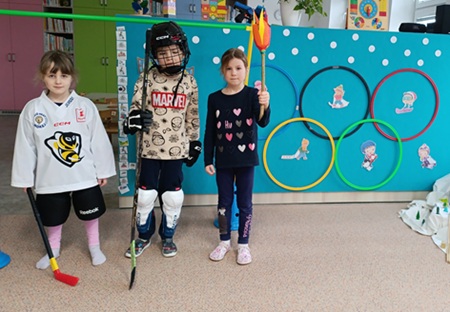 V týdnu od 9.2. – 13.2. jsme se v naší mateřské škole věnovali tématu zimních olympijských her. Děti se zábavnou formou seznámily s tradicí olympiády i s jejími symboly. Společně jsme si povídali o zimních sportech, které jsou součástí zimní olympiády. Děti si vyzkoušely hokejovou a lyžařskou výbavu, poznávaly, k čemu slouží brusle, lyže, helma, hokejka nebo lyžařské brýle, a učily se, jak je při sportu důležitá bezpečnost.