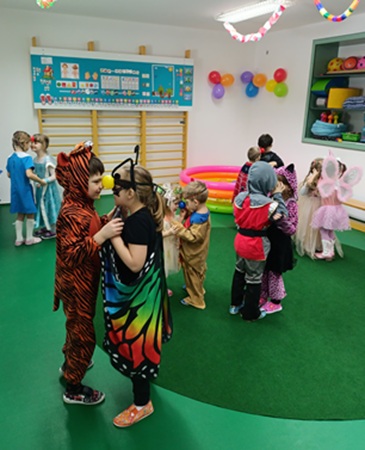 Ve čtvrtek 19. 2. 2026 se školka rázem proměnila v pohádkový svět plný princezen, superhrdinů, zvířátek i dalších veselých masek a karneval mohl začít. Během dopoledne si děti užily spoustu soutěží, her a tanečků. Nechyběla přehlídka kostýmů, společné dovádění ani radostný smích. Všichni jsme si užili báječné, veselé a nezapomenutelné dopoledne plné radosti a dobré nálady.