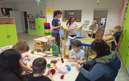 Ve středu 25. března se v naší mateřské škole ve spolupráci s paní Ihnatišínovou uskutečnilo milé odpolední setkání rodičů a dětí, které se neslo v duchu blížících se Velikonoc. Z předem připravených materiálů si poté všichni přítomní vyrobili velikonoční zajíčky ze sena, kartonu a vlny. Děti s nadšením omotávaly, lepily i zdobily a za pomoci rodičů se jim podařilo vytvořit krásná a nápaditá dílka. Každý zajíček byl jedinečný a odrážel fantazii i šikovnost svých tvůrců. Setkání proběhlo ve velmi příjemné a přátelské atmosféře. Bylo skvělou příležitostí nejen k rozvoji tvořivosti dětí, ale také k posílení vztahů mezi školkou a rodinami. Děkujeme za účast a již nyní se těšíme na další společná setkání.